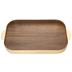 Luxuosa e elegante, a bandeja oblonga banhada a ouro 24K, com fundo amadeirado trazendo praticidade e sofisticação, alças de aba reta facilitando o manuseio e detalhe perola nas laterais da bandeja. Ideal para compor o seu decorar e servir com elegância.