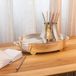 Deslumbrante e clássica, a bandeja oval Bloom banhada a prata no aço 18/10 inoxidável, com fundo espelhado trazendo elegância e sofisticação, e alças estendidas facilitando o manuseio. Ideal para compor com taças de cristal, ou compor uma bela bandeja de café. Sirva com elegância.