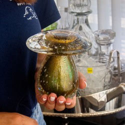 Cogumelo Murano P Verde Folha com Ouro 24k