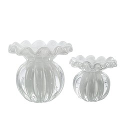 Clássico e aconchegante, o kit de vasos Batllo em cristal de murano, com detalhes de pinças na borda da peça feitas por verdadeiros artistas. Modelo trouxinha em um kit com duas peças, compondo seu ambiente com delicadeza e suavidade. Eleve seu ambiente com a beleza e requinte dos cristais.