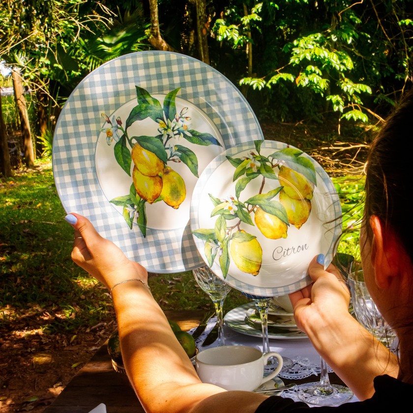 Delicado e charmoso, o prato raso Amalfitana, carrega o frescor do limão siciliano, trazendo levesa as composições de mesa. Composto por 100% de cerâmica, ideal para compor a sua mesa posta, tornando este momento em uma verdadeira esperiência. Compondo seu ambiente com delicadeza e suavidade. Eleve seu ambiente com a beleza e requinte das louças.