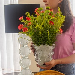 Robusto e marcante, o vaso Traun em cristal de murano, feito artesanalmente a mão por verdadeiros artistas, com detalhamentos ao longo da peça. Modelo ideal para compor arranjos, trazendo harmonia a sua mesa de centro ou até mesmo na mesa posta, compondo seu ambiente com delicadeza e suavidade. Eleve seu ambiente com a beleza e requinte dos cristais de murano.